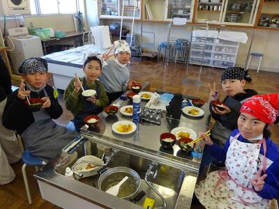 「出汁から取ると美味しいな」「ごはんが美味しく炊けたぞ」等、達成感とともに美味しく完食しました。