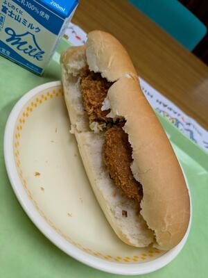 パン・メンチカツサンドの具(メンチカツと野菜のレモンあえ)・野菜スープ・牛乳